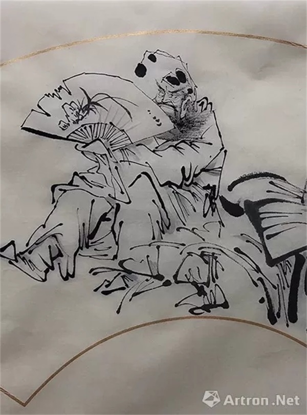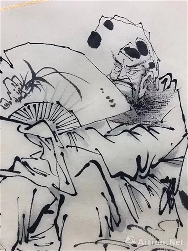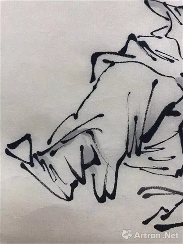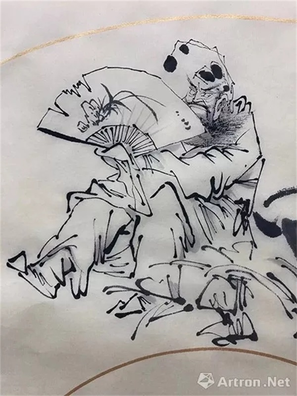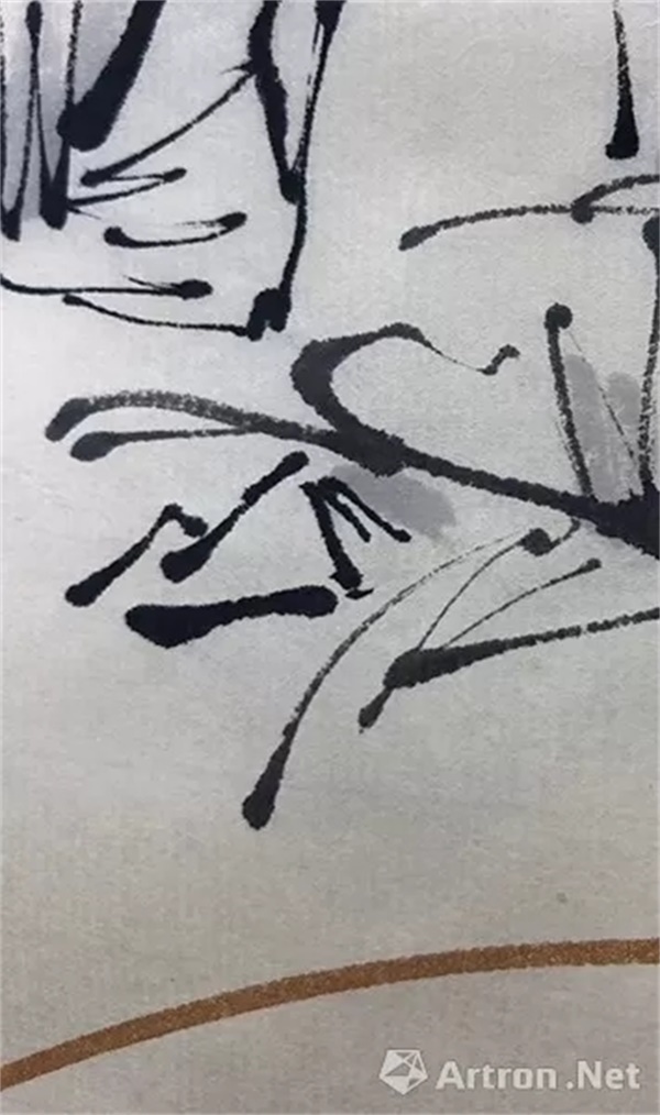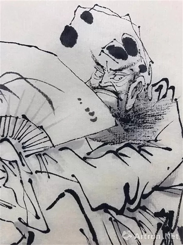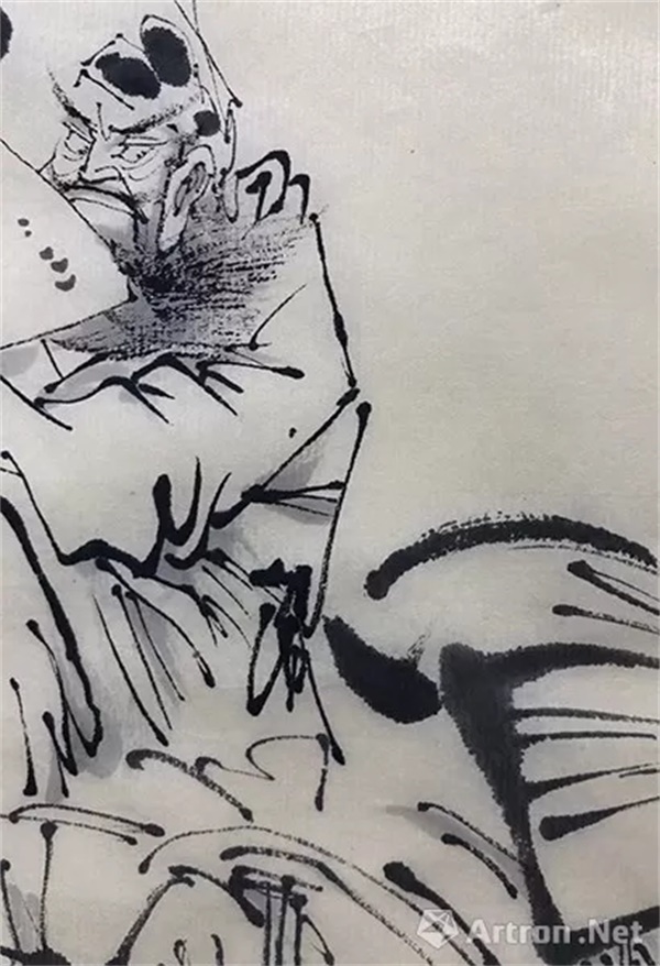 籍忠亮作画,不打草稿,不作修改,下笔直取,一气呵成。取法唐代画圣吴道子“笔才一二,象已应焉”的疏体画风。这也正是中国古典写意人物画以及后来的“仕人画”和“文人画”的形象塑造的要领所在,即“线”的简笔用法。