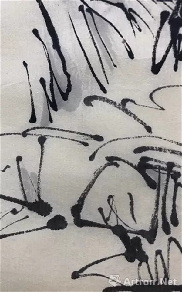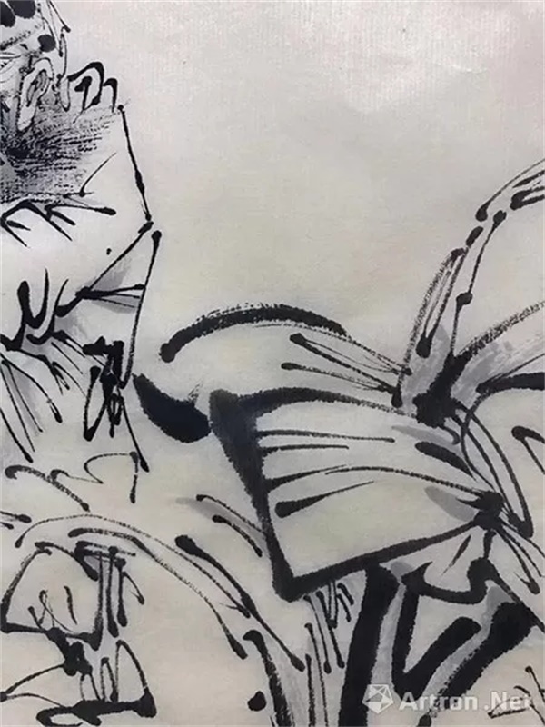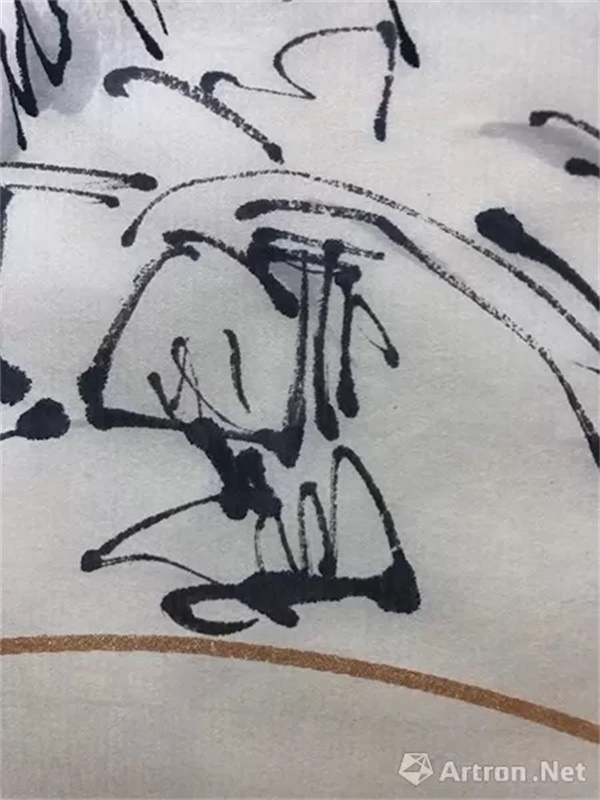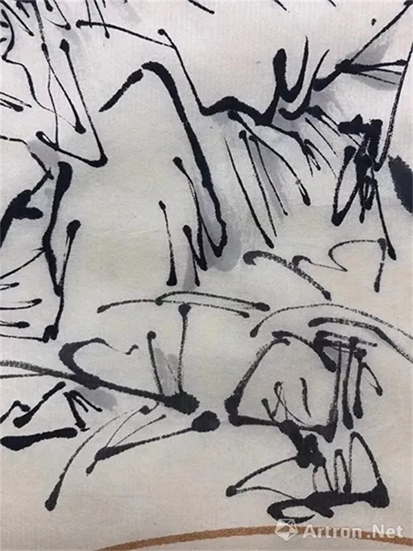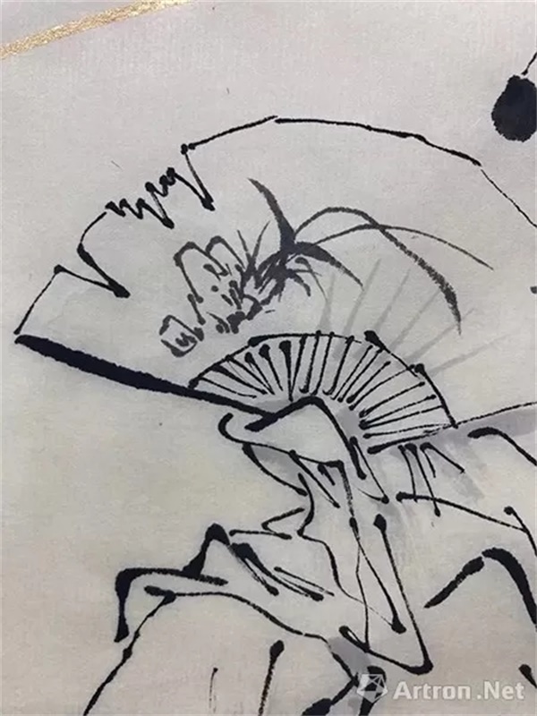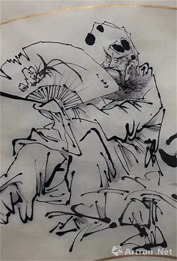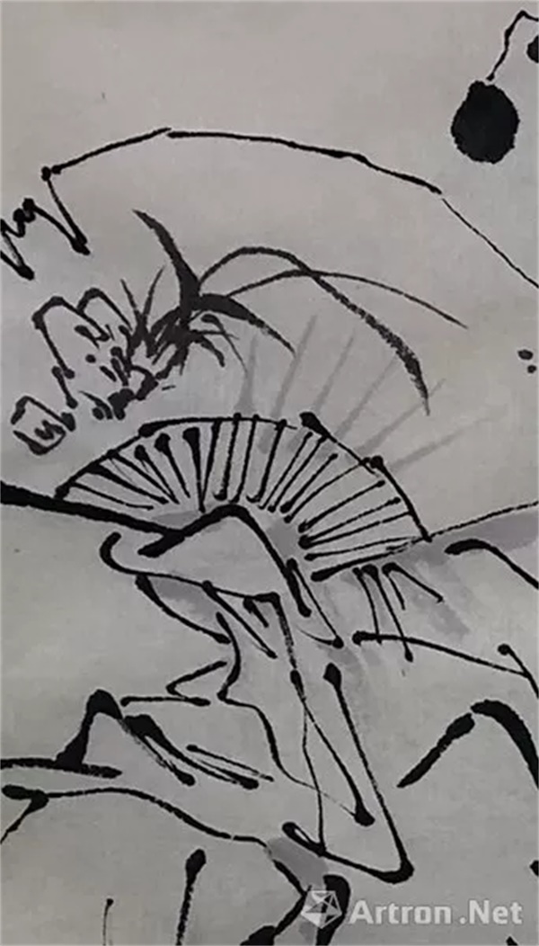 籍忠亮作画,不打草稿,不作修改,下笔直取,一气呵成。取法唐代画圣吴道子“笔才一二,象已应焉”的疏体画风。这也正是中国古典写意人物画以及后来的“仕人画”和“文人画”的形象塑造的要领所在,即“线”的简笔用法。