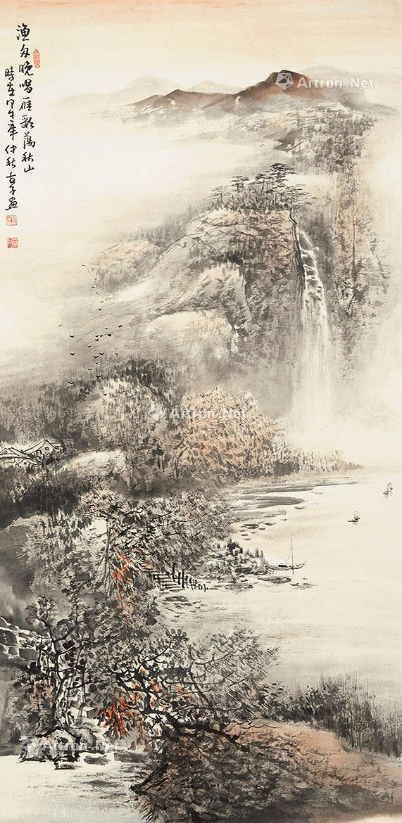 叶阿林-渔舟唱晚山水