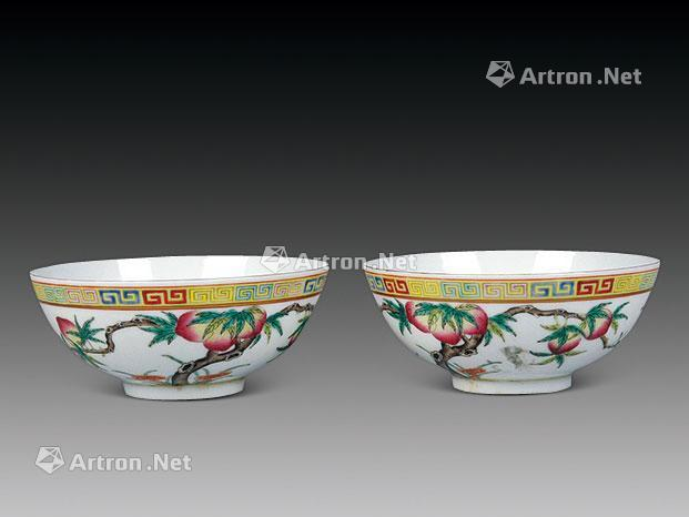 粉彩九桃纹团鹤碗(一对)(清光绪官窑)