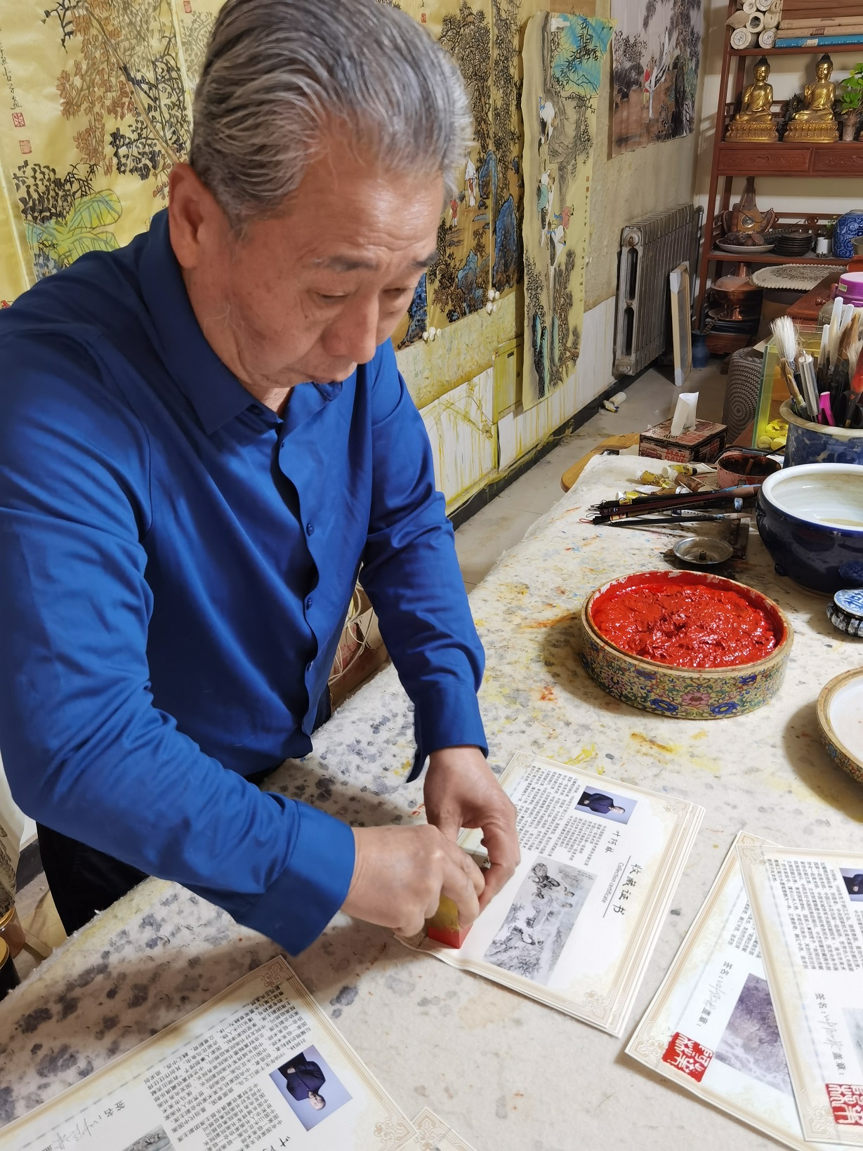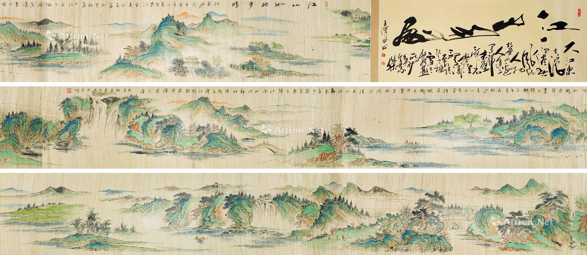 文创院下属北京乔禧国际拍卖有限公司在北京成功举办叶阿林国画专场拍卖会。此次拍卖会精选叶阿林画作153,皆为上乘之作,境界宏阔,笔墨凝重。其中,长78米的老麻布长卷《江山如此多娇青绿山水长卷》起拍价8700万,更是以9680万的高价成交,十分振奋人心。